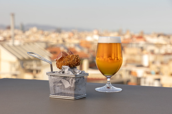 El tour gastronómico sigue en 173 Rooftop Terrace. Este espacio para deleitarse con las majestuosas vistas de la ciudad, propone una exquisita croqueta de autor de jamón ibérico, perfectamente crujiente y con una cremosidad única, acompañado de una cerveza Estrella Damm. Contemplar el espectacular paisaje panorámico de Barcelona mientras se saborea una exquisita tapa y cerveza fría, es posible en esta terraza del InterContinental Barcelona. El rooftop ofrece un ambiente único y especial y está abierto al público para el almuerzo y cena. Además, presenta una amplia carta de cócteles que se adapta a todos los gustos.