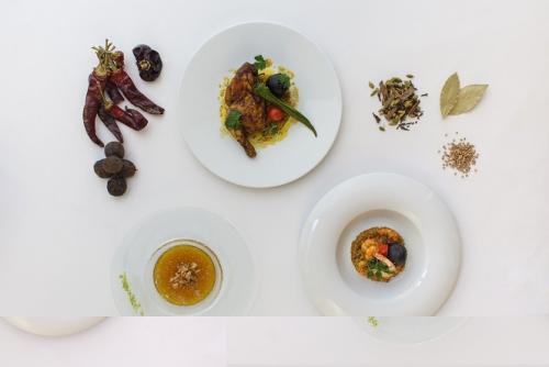 Miguel de la Fuente, chef de InterContinental Madrid, en su continuo afán por transportar al comensal a sorprendentes y exóticos rincones del mundo, crea nuevas propuestas basadas en los sabores auténticos de Próximo Oriente dónde las especias como la pimienta negra, semillas de cilantro, canela, jengibre seco, cardamomo y nuez moscada…son las protagonistas.