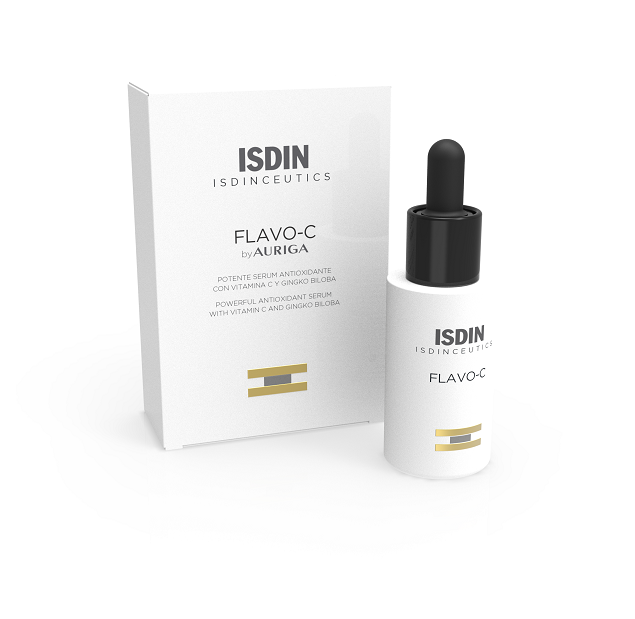 ISDINCEUTICS FLAVO-C es un serum facial antiedad con una potente combinación de antioxidantes, Vitamina C y Ginkgo Biloba. Su alta concentración en Vitamina C neutraliza los radicales libres, estimula la síntesis de colágeno y proporciona una protección contra los efectos de la radiación. Flavo-C mejora la luminosidad de la piel, promueve la recuperación de la elasticidad, aportando una mayor hidratación y un aspecto visiblemente rejuvenecido.