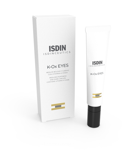 K-OX EYES es una crema contorno de ojos que reduce las bolsas, aclara el color de las ojeras gracias a su contenido de vitamina K óxido, y restaura la elasticidad de la piel. Sus efectos se perciben inmediatamente, aportando un efecto tensor y difuminando las ojeras. Su uso continuado disminuye el volumen de las bolsas y reduce gradualmente el color morado o pigmentado de las ojeras. Además ofrece protección ante la pérdida de hidratación, mejorando las líneas de expresión y consiguiendo una mirada más descansada y luminosa.