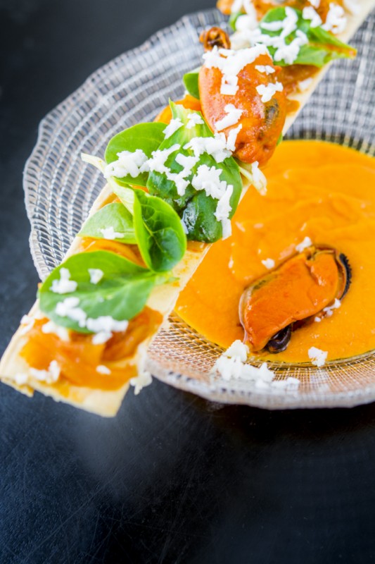 Una oferta apetecible de principio a fin, empezando por las riquísimas Croquetas artesanales de jamón con la receta de su abuela, o la Berenjena rellena de rabo de toro, otra de las especialidades de Sáez, y pasando por otros, que además de divertidos son sanos y deliciosos, como la Menestra de verduras clorofila, plagada de ‘verdes’ de temporada: judías verdes, habitas, guisantes, espárragos… o el Salmorejo cordobés con coca de mejillones en escabeche. Otras de sus apuestas fuertes son el Bacalao Desencajao, un plato que aprovecha varias partes del pez y se adereza con una salsa chipotle y las Alitas de pollo con salsa de cangrejo y pak choi. También hay propuestas a diario fuera de carta, y para los que ya empiecen a comer pensando en el postre, mejor decidirlo antes para hacer sitio a alguno de ellos, como la Tarta casera de manzana con helado de vainilla o la Sopa de hierbas y frutas con helado de romero y miel, (Aviso al consumidor: no es necesario elegir solo uno).