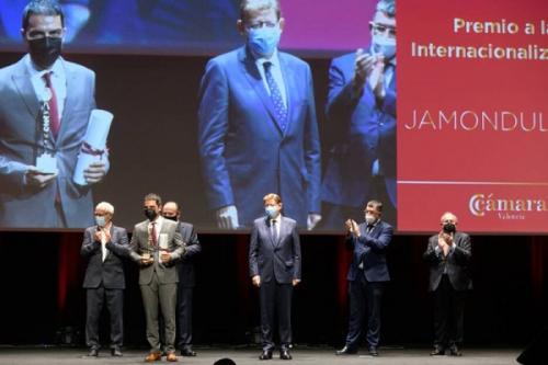 Jamondul, empresa asociada al Consorcio del Jamón Serrano Español, recibió el pasado jueves, 09 de septiembre, el premio Impulso a la Internacionalización, un reconocimiento a su trayectoria obtenido de la mano de la Cámara de Comercio de Valencia en la ceremonia de “La Noche de la Economía Valenciana”, celebrada en el Palacio de Congresos de Valencia. Así, en este evento presidido por la vicepresidenta primera del Gobierno y ministra de Asuntos Económicos y Transformación Digital, Nadia Calviño, se ha distinguido la contribución de un total de cinco empresas valencianas al interés general de la economía, reivindicándolas como una pieza clave en la creación de riqueza, empleo y bienestar general.