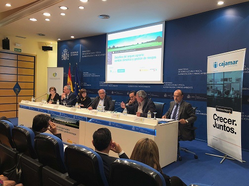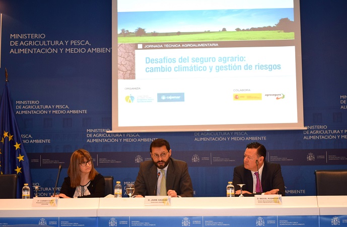 El MAPAMA acogió ayer la jornada ‘Desafíos del seguro agrario: cambio climático y gestión de riesgos’, organizada por el Consejo de Colegios de Ingenieros Técnicos Agrícolas y Cajamar Caja Rural. En ella, los actores públicos y privados que conforman el sistema, han aportado su visión sobre los retos que debe afrontar el sistema de seguros agrarios ante distintas amenazas, con especial incidencia en el cambio climático, sus riesgos y también sus oportunidades.