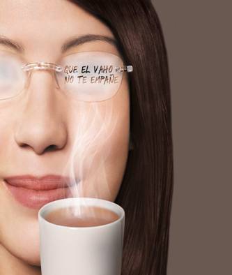 Gracias a las propiedades anti-vaho de las lentes OptiFog, las gotas de agua que forman el vaho se distribuyen por la superficie de las lentes creando una película de agua totalmente invisible, de forma que el vaho se elimina por completo.