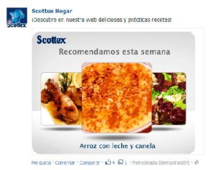 Kimberly-Clark, compañía de productos de higiene y cuidado personal, publica un post en el perfil de Facebook de Scottex® Hogar con la tecnología Social Rich Media que permite integrar apps y microsites en posts y tweets.