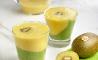 Para finalizar, sirve en vasos grandes la mitad de la mezcla de kiwi, y después la mezcla de mango y decóralo con las rodajas del kiwi reservadas.