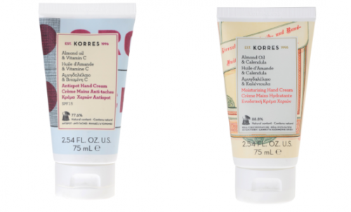 Crema de manos con aceite de almendras y caléndula y Crema de manos con aceite de almendras y vitamina C, con FPS 15. Dos cremas muy hidratantes y de larga duración ideales para el uso diario, ya que no son grasas y se absorben rápidamente.