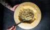 Tortilla rellena caramelizada: queso de cabra y cebolla carameliza