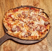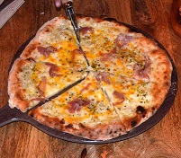 Esta pizza es una reinterpretación de la clásica carbonara con los toques más típicos de Italia. La combinación de la nata, la cremosidad de la mozzarella, el intenso sabor de la panceta italiana, la jugosa yema de huevo, el carácter del parmigiano, la pimienta negra, el aceite de oliva y el orégano, la convierten en una deliciosa mezcla de texturas y sabores.