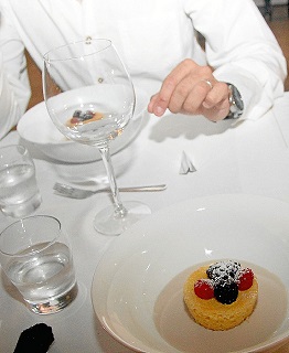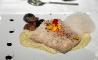 Entre los platos y entrantes había Infusión de flor de tila y melón, salmón marinado y cecina crujiente, Chupito de aguacate, zanahoria y hierba limón con aire de té blanco, Mousse de queso de cabra cremoso servido con té rojo y mermelada de grosella, Consomé de pollo y albóndigas shiitake con infusión de oolong, Filete de dorada marinada con rooibos, ajoblanco y uvas, Ternera cocinada a 45 grados con patata dulce ahumada, cebolla caramelizada y reducción de té negro, Postre de mango y té verde y, para finalizar, pastel de vainilla, bayas y crema de chocolate blanco e infusión de frutas del bosque.