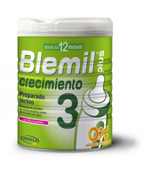 Blemil plus 3 Crecimiento, en línea con los últimos estudios de la AEP y la ESPGHAN, presenta un 30% menos de proteínas, que la formula anterior, y un 50% menos que la leche de vaca, para ajustarse a las necesidades proteicas del niño en esta etapa. Blemil plus 3 constituye una excelente fuente de energía: 500 ml diarios le aportan al niño entre un 15% y un 20% de su requerimiento calórico.
