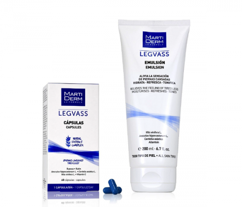 MartiDerm LegVass ofrece una acción profunda desde el interior y a nivel tópico, dando una efectiva solución al problema gracias a dos productos cuya composición de bioactivos vegetales, actúan en sinérgia para combatir la insuficiencia venosa de las piernas, mejorar la micro-circulación y aliviar la sensación de pesadez, incluso durante el embarazo, y recuperar la ligereza.