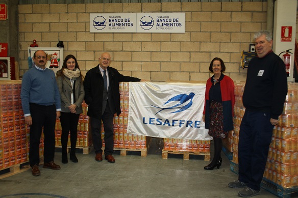 Lesaffre Ibérica, filial en España y Portugal del grupo internacional familiar Lesaffre, actor mundial de referencia en levaduras y fermentación, colabora desde hace años con el Banco de Alimentos de Valladolid a través de una iniciativa social en la que participan todos sus empleados. En esta ocasiòn los representantes de la empresa española de capital francés hicieron entrega de 5.766 kilogramos de azúcar a los responsables del Banco de Alimentos de Valladolid.