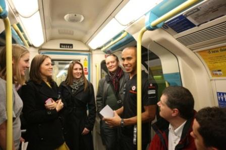 El piloto inglés de Fórmula 1 Lewis Hamilton se ha subido como un pasajero más al metro de Londres para lanzar la nueva campaña de consumo responsable de Diageo, compañía líder de bebidas espirituosas Premium (J&B, Johnnie Walker, Cacique…), en un intento por concienciar a la gente de la importancia de no mezclar coche y alcohol, más aún en fechas festivas y en celebraciones tan señaladas como la noche de Fin de Año.