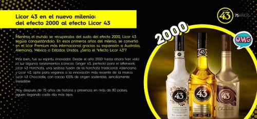 Para concluir el recorrido de la plataforma de gaming creada con motivo de su 75 aniversario, Licor 43 acaba de lanzar un nuevo juego que ilustra los años 2000 y hace Licor 43 pone el broche final a su plataforma de gaming y se adentra en los años 2000 tras recorrer sus 75 años de historia guiños al puerto de Cartagena, ciudad donde la familia Zamora comenzó a comercializar Licor 43. A través de una ilustración con claras referencias a sus hitos, los usuarios podrán revivir los años 2000 en el puerto de Cartagena con el objetivo de atender, en una de las icónicas terrazas del paseo, a los clientes que quieren disfrutar de Licor 43. Como en cada década, los participantes podrán optar a diferentes premios.