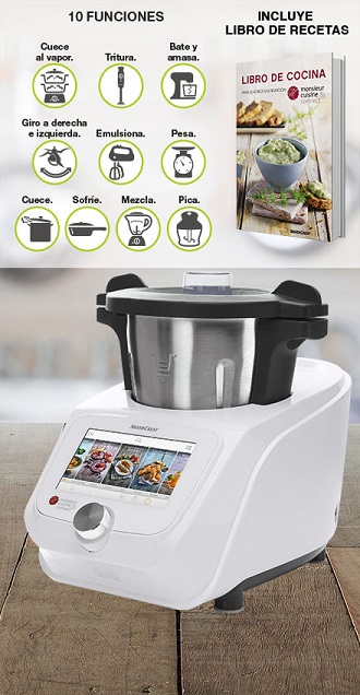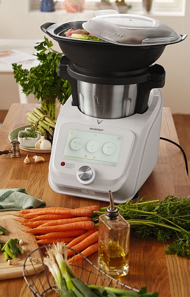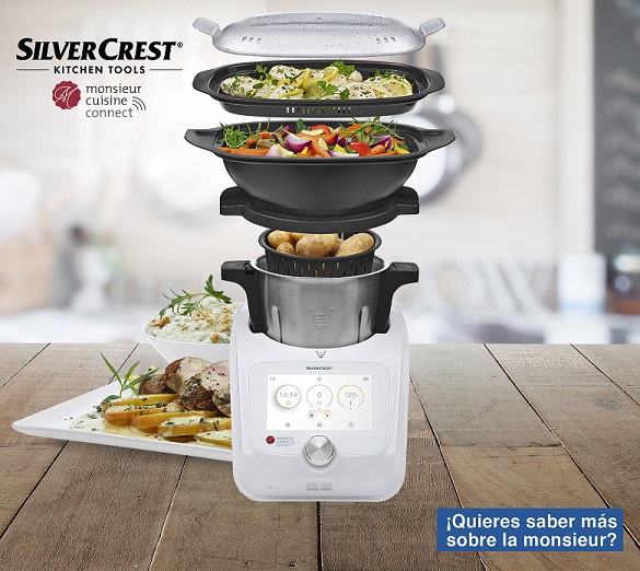 El robot de cocina Silvercrest cuenta con conexión WIFI y diez funcionalidades de cocinado que permitirán al consumidor crear excepcionales y deliciosas recetas o recrear una de las 160 que están preinstaladas. La capacidad del recipiente mezclador es de 3L, casi un litro mayor que el modelo de diciembre de 2017. Gracias a la opción de cocina guiada y la pantalla táctil integrada, los pasos a seguir para cocinar cada plato son muy sencillos. Respecto a la estructura, el robot de cocina de Lidl cuenta con báscula integrada, a diferencia del modelo anterior.