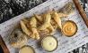 También encontramos versiones de platos de nuestra tierra como el Pescaito frito que se sirve entero con sus raspas acompañado de tres mayonesas o el Arroz en llauna con txistorra y queso en aceite de chile y ajetes confitados, como no, todos ellos con el toque personal del chef.