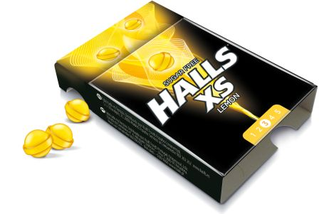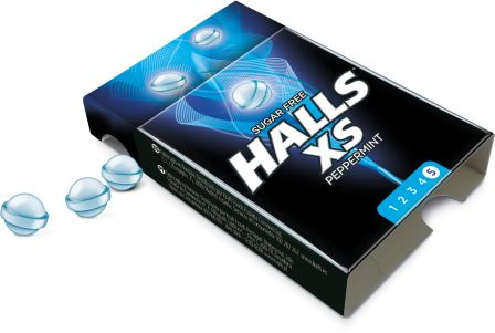 El embalaje de Halls XS, diferente al del resto de la gama Halls, tiene una imagen divertida y moderna, y es cómodo y práctico para llevar. Se trata de una caja con un dispensador individual que libera una esfera en cada ocasión.