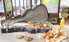 Podréis daros un gran homenaje con todos estos platos: bollería clásica, una selección de ibéricos, salmón, granola casera con yogur… y muchas otras cosas que encontrarás servidas en el interior de una funda de guitarra Fender, ¡mejor imposible!