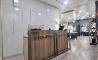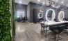 Al igual que en las últimas aperturas de la compañía, el espacio se ha actualizado con una decoración que refleja una estética moderna y actual, acorde a la nueva imagen de la firma: fresca, joven y, como siempre, profesional. Para ello se recurre a líneas minimalistas y colores neutros como grises oscuros o blancos. Las oscuras paredes contrastan con el suelo pulido y la estudiada iluminación juega un papel esencial. Además, el nuevo salón ha sido dividido en diferentes ambientes teniendo una zona reservada para tratamientos, lavado y corte. No hay ningún elemento de decoración superfluo, el verdadero protagonista es el cliente.