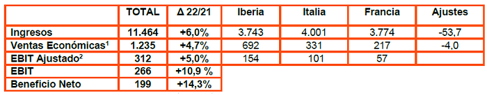 En Iberia, las Ventas Económicas han alcanzado los 692 millones de euros, un 9,1% superiores a los 634 millones de euros registrados en el ejercicio 2021.