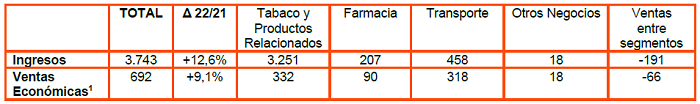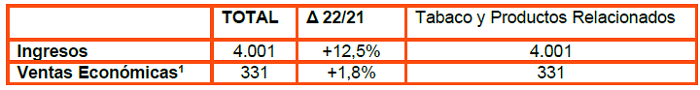 En cuanto a las Ventas Económicas por actividades, las de Tabaco y productos relacionados han aumentado un 9,5% respecto al ejercicio anterior. El crecimiento se debe, principalmente, por el aumento de volúmenes de tabaco distribuidos, la facturación de servicios de valor añadido a los fabricantes de tabaco y el crecimiento experimentado por las Ventas Económicas de distribución de productos de conveniencia.