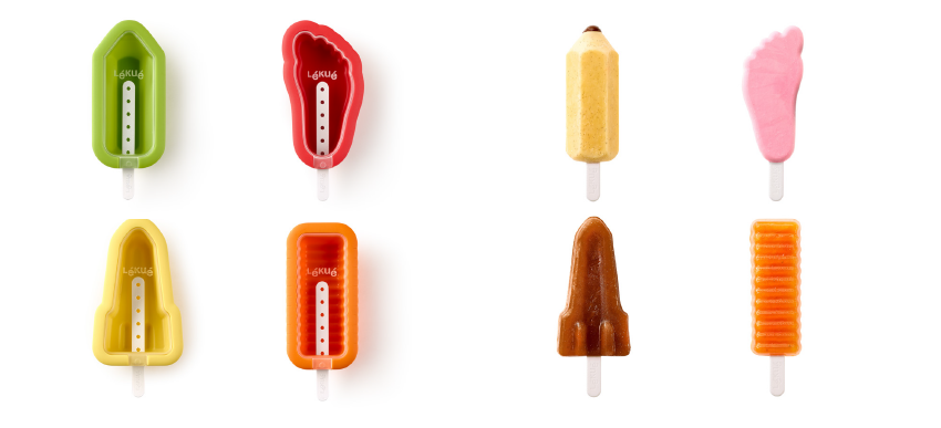 Con los nuevos moldes Stackable Ice Lolly ahorrarás espacio en tu congelador. ¡No renuncies a tener siempre un rico helado del que echar mano! Te ayudarán a organizar la capacidad de tu refrigerador ya que su práctico diseño permite apilarlos y, además, evitarás que se impregnen olores y sabores de otros alimentos gracias a una tapa que impide su absorción. Incluyen deliciosas recetas rápidas y fáciles de preparar. ¡Date un capricho cuando te apetezca y ten siempre un helado en la nevera!