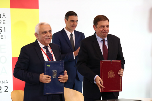 Los dos ministros han firmado un memorándum de entendimiento para favorecer la colaboración entre ambos países en materia de ganadería y sanidad vegetal, fertilizantes y productos fitosanitarios, esquemas de calidad para productos agrícolas y alimentarios, promoción del uso eficiente del agua y la energía en los sistemas de ragadío, transformación digital del sector agroalimentario y del medio rural, innovación y transferencia de conocimiento, papel de las mujeres y los jóvenes en el medio rural y relevo generacional, e intercambio de información y alianzas entre institutos de investigación científica españoles y rumanos en el campo de la agricultura y la industria alimentaria.