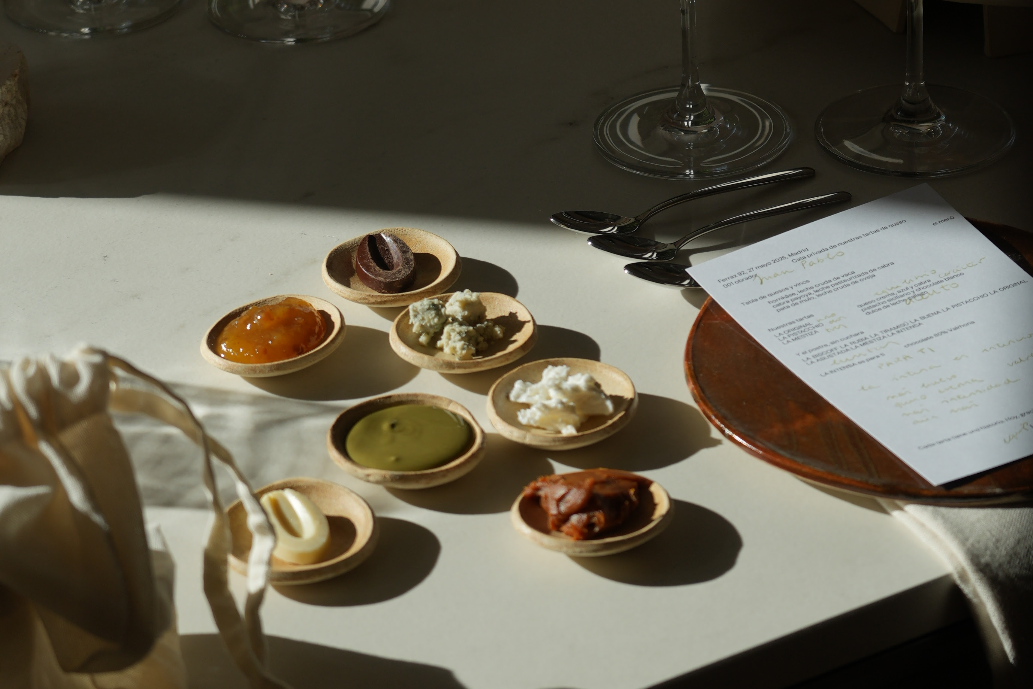 El obrador madrileño presenta sus catas de tartas de queso en su espacio de Las Salesas. En ellas 19 personas disfrutan de los sabores de sus tartas combinados con diferentes vinos, en un formato cercano y divertido guiado por su fundador. Las primeras sesiones emocionaron tanto a los invitados que terminaron llorando de felicidad. Estas catas son ideales para grupos, parejas o para regalar. Además, también pueden personalizarse para empresas o grupos privados.