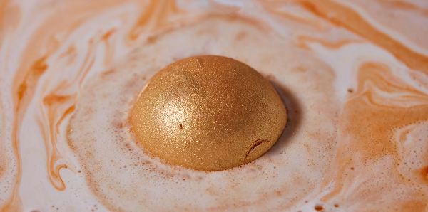 Dexter’s Dragon Egg se tiñe de dorado en homenaje al Lazo de Oro Internacional contra el cáncer infantil. Una combinación de aceite de limón y aceite de bergamota de Sicilia increíblemente refrescante y absoluto de jazmín que ayuda a calmar y relajar. De su interior aparece confeti, hecho con papel de arroz, y el sonido de un fuego crepitante gracias a los caramelos carbonatados.
