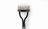 Este ingenioso rastrillo, que las perfila una a una, cuenta con una línea de finísimas púas metálicas, que tienen terminaciones cónicas y que se disponen sobre un soporte convexo específicamente diseñado para adaptarse a la forma del párpado, sin tocar el rostro.