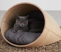 Hay una gran variedad de formatos de camas que van desde grandes y extra grandes a ovaladas para mascotas más pequeñas que cubren completamente al animal y le dan una mayor sensación de calidad y confort. Para los más exigentes, también las hay con base de madera de fresno y patas siendo un coqueto rinconcito para que se acurruquen. Además, para los gatos hay camas cuadradas de doble altura, para que puedan moverse en función de si quieren más o menos luz. Sus colores van desde los grises en todas sus gamas, hasta la mostaza.
