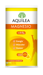 La combinación de ingredientes de la naturaleza con la ciencia y la tecnología más avanzada hace de Aquilea un referente en la elaboración de productos que favorecen el bienestar. La confianza de los consumidores ha convertido Aquilea Magnesio en el número 1 del mercado, un producto que destaca por su gran eficacia. Aquilea Magnesio se presenta en diferentes formatos y combinaciones para adaptarse a las necesidades de cada persona. Así, podemos encontrar comprimidos efervescentes, sobres granulados, botes de tamaño familiar…