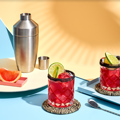 Para hacer el sirope de higo chumbo deja en remojo la fruta en un bol durante 30 minutos. Una vez pasado este tiempo, reúne el Cointreau, el tequila, el zumo fresco de limón y el de pomelo y agita los ingredientes en una coctelera. Cuela la combinación sobre hielo y sal del Himalaya. Adorna este delicioso Margarita con una rodaja de lima.
