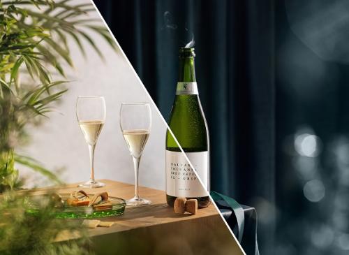 Su color es amarillo pálido y la burbuja es fina y con corona constante. En cuanto al aroma, es intenso y limpio a fruta fresca y flores blancas, con pequeños recuerdos a panadería fruto de la crianza sobre lías. En boca el paso es agradable, fresco, fino y elegante.