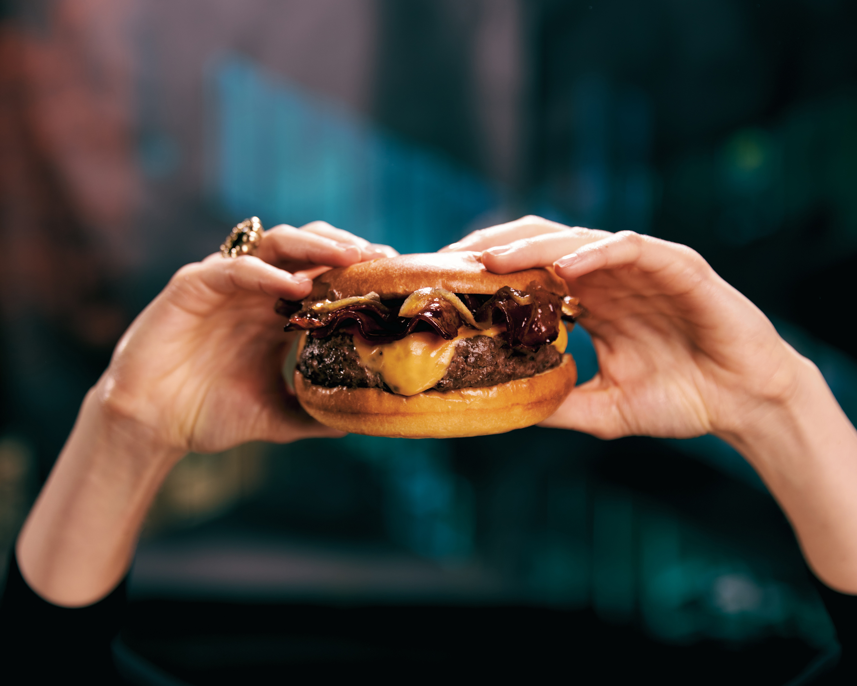 - Nolita -bacon crujiente macerado en salsa Bourbon, doble de cheddar, cebolla confitada y salsa de carne-, su burger más vendida.