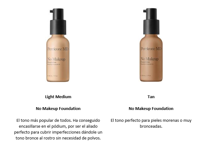 “Nuestro tono de piel evoluciona a lo largo del año, y aunque tengamos el color deseado, siempre debemos acudir a ese aliado que nos asegure una piel de aspecto joven, sano y sin imperfecciones” afirma Raquel González, de Perricone MD. Esta es una de las razones por la que la marca cosmeceútica ha multiplicado sus tonos de la línea No Make Up Skincare, facilitando una piel perfecta con la tonalidad que mejor se adapta a nosotras en cada momento.