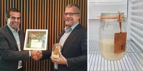 La Masa Madre Saint Honoré de Europastry se ha convertido en la masa madre número 88 de la única Biblioteca de Masas Madre del mundo. El Presidente Ejecutivo de Europastry, Jordi Gallés, así como el Director de I+D de la División de Pan de la compañía, Jordi Caballero, han hecho entrega de la Masa Madre Saint Honoré a Stefan Cappelle, Director Mundial de Masas Madres de Puratos, en las instalaciones Center for Bread Flavour en Saint Vith (Bélgica).