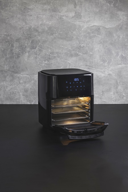 Es por ello que los consumidores han buscado alternativas a este tipo de aceite, como es el caso de las freidoras de aire, Masterpro presenta su freidora de aire Masterpro Foodies, un horno freidora sin aceite con capacidad de hasta 12L con 8 programas automáticos para freír, asar, deshidratar, hornear, y 6 accesorios distintos que permitirá realizar todo tipo de preparaciones: cesta giratoria, perfecta para palomitas o patatas; 2 bandejas de rejillas para deshidratar o conseguir un crujiente extra; bandeja tradicional; mango en forma de U para sacar tu comida recién hecha, espetón para pollo y brochetas con soporte.