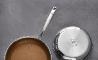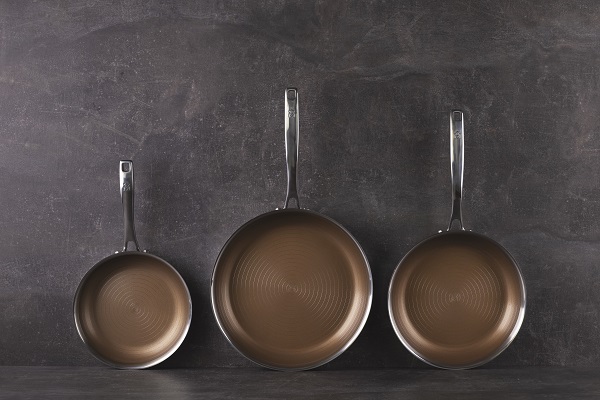 Recomendadas por la Fundación Cook & Chef Institute, las sartenes Giro cuentan con una revolucionaria construcción de triple capa, que permite una mejor distribución y retención del calor haciéndolas más eficientes energéticamente, además de una alta resistencia a la corrosión y al desgaste. Compuestas con acero inoxidable con una capa de antiadherente color oro libre de tóxicos en la superficie de cocinado, aluminio en su núcleo y acero inoxidable en su base, son además aptas para todo tipo de cocinas y fuegos, incluida la inducción. Su mango ergonómico proporciona un agarre mucho más cómodo y seguro mejorando el manejo a la hora de cocina.