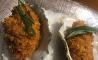 Menchi katsu o Tonkatsu, ambos con ensalada de col china y mostaza japo