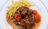 Rabo de toro al vino tinto con un ‘toke’ de chocolate negro y guarnición de patatas y zanahoria