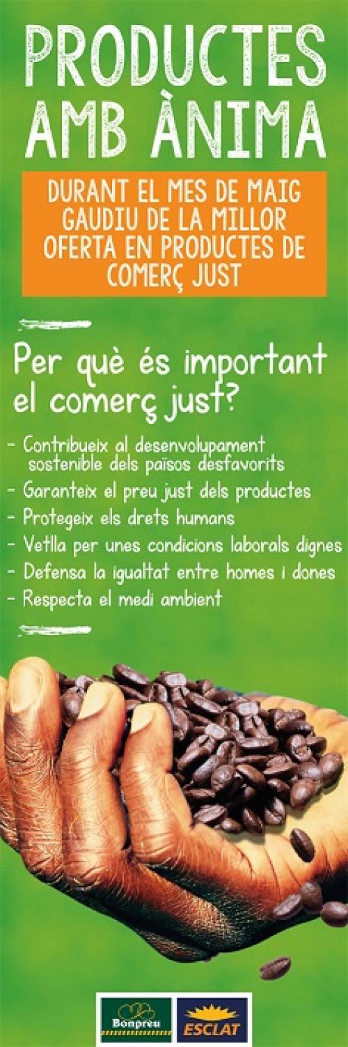 Habitualmente se pueden encontrar productos de comercio justo en los establecimientos Bonpreu y Esclat, pero el Grupo Bon Preu realizará acciones específicas durante el mes de mayo para informar a sus consumidores de sus características y animarles a consumirlos. Por este motivo, durante este mes se amplía la gama de productos de comercio justo en todos los establecimientos.