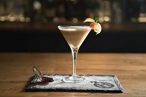 Venecia, una elegante combinación de ron dorado, ron blanco, limón, zumo de maracuyá y angostura.