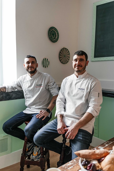Ricardo y José Manuel, -Mane para los amigos-, se formaron en la Escuela de Hostelería de Conil y es que trabajando en la sala y en el office de un local de su tierra, les picó el gusanillo y decidieron estudiar cocina mientras seguían en la Venta Alegría. Eso sí, pronto se pusieron en los fogones y fue aquí, en esta casa de comidas, donde se empaparon de tradición, de fondos de mucho chup chup, de materia prima, de sencillez y de sabor. Su trayectoria continuó en reconocidos restaurantes del panorama nacional: Aponiente, El Bohío… En febrero de 2019 abrieron Colósimo y Menudeo es su segundo proyecto.