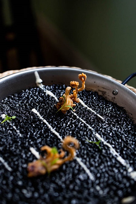 En frío tienen creaciones como la andaluza Berenjena asada y boquerones curados o la Caballa escabechada con piperrada y mayonesa de escabeche. Continuar con el Arroz negro ‘con sus interiores’ resulta de lo más acertado, porque sí, también lo bordan y no quedará ni un grano. Entre los pescados rinden homenaje a sus comienzos con las Almejas Alegría -la venta donde iniciaron su andadura- o el imprescindible Pulpo asado con puré de matanza, que evoca a la manteca colorá. Y si alguien echaba de menos más chup chup, que pida las Albóndigas de conejo, un plato para el recuerdo y por supuesto para mojar pan, que representa a la perfección el concepto de este restaurante: tradición, sabores 100% reconocibles y ensalzar nuestra gastronomía; como también lo hace la Carrillera de los pueblos blancos… Apetece todo, ¿verdad? Pues a esto se suman las sugerencias del día y además hay que dejar sitio para el postre: lo bueno, que solo hay tres; lo ‘malo’, que están tan buenos que cuesta decidirse: Pionono, Arroz con leche y Nuestro flan.