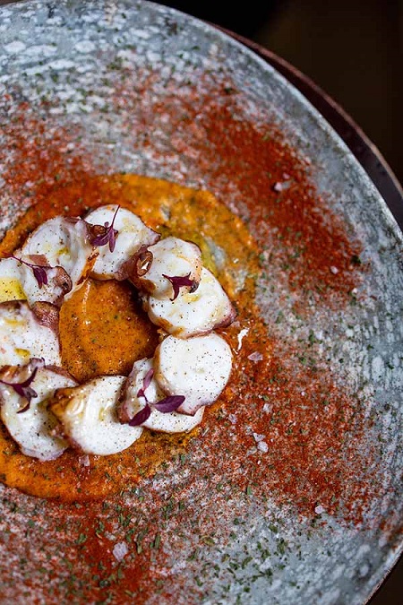 La otra opción, -100% recomendable- pasar al sencillo y agradable salón -el verde agua de sus paredes ya invita a la calma-, empezar por el ‘menudeo’ y continuar con toda una experiencia a través de un recetario marcado por las especias y unas hierbas aromáticas que crean adicción. Porque este viaje al sur se saborea en cada plato a través de un producto, su correspondiente salsa y ese embelesador aroma… Al igual que en Colósimo, los hermanos apuestan por una carta corta e irresistible, con apenas una veintena de propuestas, la mayoría pensadas para compartir.