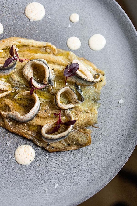 Con una fuerte presencia del sur y un hilo conductor en el que los aromas tienen un gran protagonismo, estos jóvenes dan un paso más, dejan volar su imaginación -sin perder la tradición y ese chup chup que tan bien hacen- y obtienen como resultado recetas originales como la Berenjena asada y boquerones, tan sabrosas como el Arroz negro o difíciles de encontrar como las Albóndigas de conejo o el Pionono