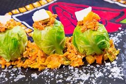 Poner una cucharada del relleno de verduras y cerrar sobreponiendo el principio de la lámina con el final.