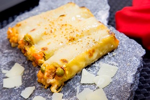 Tapar con la bechamel los canelones y rallar queso parmesano por encima.